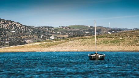 Keywords: boat sailboat marsh dawn sky blue clouds lake water float sailing sailing boat landscape calm nature horizon holiday