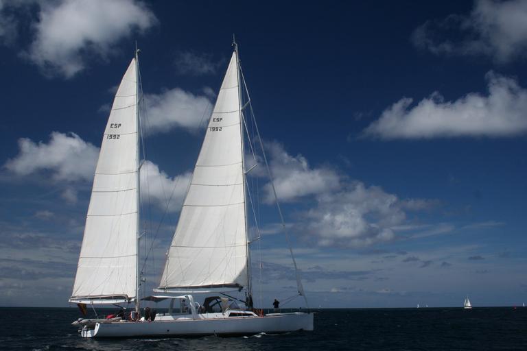 Keywords: boat sailboat ship sails sea strings mats navigation summer holiday blue sky clouds