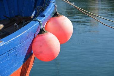 Keywords: boat starboard wharf sea marine buoys colors blue water maritime