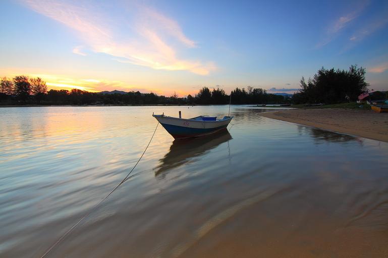 Keywords: boat sunset sea travel landscape outdoors evening