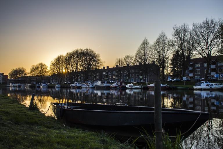 Keywords: boat water sunset rowing nature air trees netherlands boats sailing boat quay masts grass river