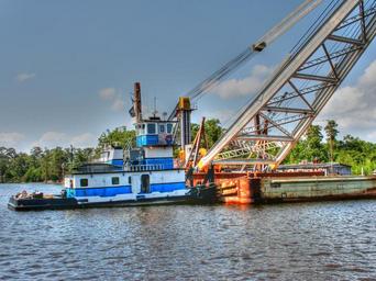 Keywords: boat work boat tug water vessel nautical marine working outdoor horizon work ship