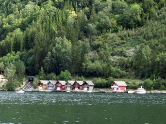 Keywords: boathouses homes at the lake water mountain norway romantic colorful cheerful summer