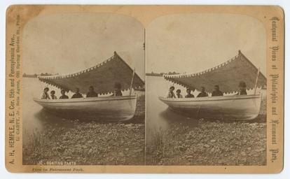 | Keywords: stereographs philadelphia fairmount park fairmountpark lakes boats a. h. hemple ahhemple monochrome Shows two women and four men sitting in a covered boat resting at the edge of a lake in Fairmount Park, Philadelphia,1876. Rocks, weeds and fallen leaves form the shore line. Accession number: P.2011.47.856 Shows two women and four men sitting in a covered boat resting at the edge of a lake in Fairmount Park, Philadelphia,1876. Rocks, weeds and fallen leaves form the shore line. Accession number: P.2011.47.856 |