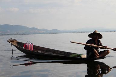 Keywords: Boatman at Inle Lake.JPG en A boatman rowing a traditional boat at Inle Lake my 2013-12-21 16 44 08 own mydaydream89 cc-zero OpenMyanmar Images by mydaydream/Myanmar Boats of Inle Lake Uploaded with UploadWizard People of Myanmar