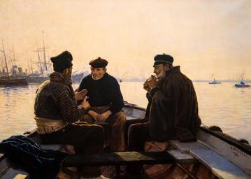 | Keywords: art painting met Dionisio Baixeras y Verdaguer (Spanish, Barcelona 1862-1943 Barcelona) Boatmen of Barcelona, 1886 Oil on canvas Baixeras trained at the Academy of Fine Arts in his native Barcelona and made his international debut with this painting, which was exhibited at the Paris Salon of 1886. It was purchased there by the New York banker, railroad magnate, and art collector George I. Seney, an early supporter of the Metropolitan Museum. The artist balanced a restricted palette with a bold design that fosters a sense of intimacy with these working men pausing from their labors. Their rapt attention to one another's conversation and measured gestures endow them with a dignity that transcends their grizzled appearance. Gift of George I. Seney, 1886 87.4.7 Photo taken at The Met, January 2016 www.metmuseum.org/collection/the-collection-online/search... Dionisio Baixeras y Verdaguer (Spanish, Barcelona 1862-1943 Barcelona) Boatmen of Barcelona, 1886 Oil on canvas Baixeras trained at the Academy of Fine Arts in his native Barcelona and made his international debut with this painting, which was exhibited at the Paris Salon of 1886. It was purchased there by the New York banker, railroad magnate, and art collector George I. Seney, an early supporter of the Metropolitan Museum. The artist balanced a restricted palette with a bold design that fosters a sense of intimacy with these working men pausing from their labors. Their rapt attention to one another's conversation and measured gestures endow them with a dignity that transcends their grizzled appearance. Gift of George I. Seney, 1886 87.4.7 Photo taken at The Met, January 2016 www.metmuseum.org/collection/the-collection-online/search... |