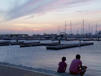Keywords: boats children beach barca friendship sunset spring holiday horizon calm port landscape brothers water sea family