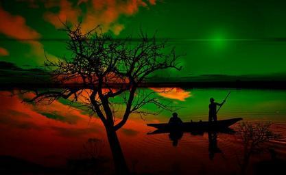 Keywords: boats fischer dreams sunset green lake boot tree fishing boat fiction shadow fantasy dream unreality request pipe dream desire longing claim utopia