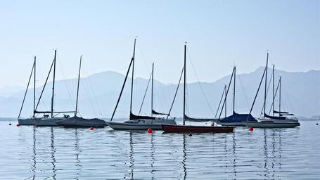 Keywords: boats lake chiemsee anchorage port water pier coast mirroring