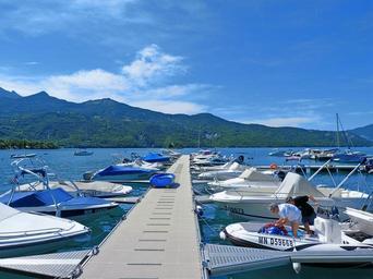 Keywords: boats lake pier port anchorage leisure holidays summer boating bay st michel lake of serre ponçon water landscape