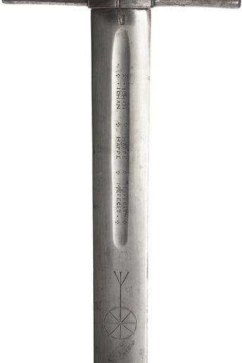 | Keywords: Bödelssvärd - Livrustkammaren - 102647.tif LSH artwork Johann Happe Hoppe klingsmed sv Fäste av mörktonat urspr blånerat stål Åttsidig rundad knapp med relativt stor nitknapp åttsidiga raka parerstänger avsmalnande mot krysset som är slätt och med konvexa långsidor <br/>Kavel lindad med tvinnad tunn ståltråd <br/>Klinga tvåeggad med mjukt avtrubbad spets på starka delens båda sidor en bred flack hålkäl vari punsat på var sida och upprepat på den ena sidan IOHAN HAPPE ME FECIT på den andra sidan IOHAN HAPPE SOLINGEN I klingbasens båda sidor inslaget stämpel en vildman stödjande sig mot en stav Ovanför hålkälen inlagt i koppar symboler för avrättning Peinliches Gericht på ena sidan hjul på den andra galge <br/>Johannes Hoppe eller Happe Hoappe Happie verksam från ca 1620 till ca 1640 i Solingen senare även i England original caption Bödelssvärd<br/> Nyckelord Föremålsbild Svärd ca other date - 1620 1640 steel b2 - Blankvapen - klinga material stål - metal b6 - blankvapen - kavel och kavelklädsel material ståltråd - steel b1 - Blankvapen - fäste material stål size mm 1049 size mm 61 klinga size mm 816 klinga g 1780 LRK Otroligt 2015 Livrustkammaren IOHAN HAPPE SOLINGEN anv b2 - blankvapen - klinga; Johann Happe Hoppe IOHAN HAPPE ME FECIT anv b2 - blankvapen - klinga; Johann Happe Hoppe place of origin Solingen original filename lm_dig16512 40148 inventory number LRK 3602 102647 CC-BY-SA Jens Mohr <gallery caption Different images of same object > File Bödelssvärd - Livrustkammaren - 102648 tif File Bödelssvärd Solingen ca 1620-ca 1640 - Livrustkammaren - 9348 tif File Bödelssvärd 1620-1640 cirka - Livrustkammaren - 102645 tif File Bödelssvärd 1620-1640 cirka - Livrustkammaren - 102643 tif </gallery> <gallery caption Related objects > File Balja till bödelssvärd Solingen ca 1620-1640 - Livrustkammaren - 812 tif LRK 3603 </gallery> Executioner's sword images from Livrustkammaren Jens Mohr Media contributed by LSH dim-with multiple size templates Media contributed by LSH unmatched creator Media contributed by LSH 2015-11 Color images from Livrustkammaren |