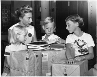 | Keywords: smithsonian institution smithsonianinstitution smithsonian institution archives smithsonianinstitutionarchives 2012 women's history month womenshistorymonth women in science womeninscience woman children mother daughter son four blonde packages books danish odontology biology duke scientist physiology case western reserve university casewesternreserveuniversity maine mont desert island montdesertisland laboratory 1950s fifties academia 20th century - mid 20thcenturymid people blackandwhite monochrome indoor black and white Subject: Schmidt-Nielsen, Bodil        University of Copenhagen        Duke University Type: Black-and-white photographs Topic: Women scientists      Physiology      Zoology      Camels Local number: SIA Acc. 90-105 [SIA2009-2750] Summary: Bodil Mimi Krogh Schmidt-Nielsen (b. 1918), with her children (left to right) Mimi (age 5), Bent (age 9), and Astrid (age 11). They are shown examining study materials to be taken on an African expedition. The caption provided with the photograph stated: "A year in the Sahara Desert won't mean a vacation from school for the Schmidt-Nielsen children. While their parents conduct research on camels, the children will learn the three R's by correspondence courses." The daughter of renowned Danish physiologists August and Marie Krogh, Schmidt-Nielsen's early work focused on calcium and phosphorus metabolism. In 1946, she became the first person to receive the new Doctor of Odontology degree from the University of Copenhagen (she also received a Ph.D. from the University of Copenhagen, in 1955). As a research professor at Duke University (1952-1964), she studied fluid and ion balance and renal physiology in invertebrates as well as amphibians, reptiles, birds, and mammals Cite as: Acc. 90-105 - Science Service, Records, 1920s-1970s, Smithsonian Institution Archivess Persistent URL:Link to data base record Repository:Smithsonian Institution Archives View more collections from the Smithsonian Institution. Subject: Schmidt-Nielsen, Bodil University of Copenhagen Duke University Type: Black-and-white photographs Topic: Women scientists Physiology Zoology Camels Local number: SIA Acc. 90-105 [SIA2009-2750] Summary: Bodil Mimi Krogh Schmidt-Nielsen (b. 1918), with her children (left to right) Mimi (age 5), Bent (age 9), and Astrid (age 11). They are shown examining study materials to be taken on an African expedition. The caption provided with the photograph stated: "A year in the Sahara Desert won't mean a vacation from school for the Schmidt-Nielsen children. While their parents conduct research on camels, the children will learn the three R's by correspondence courses." The daughter of renowned Danish physiologists August and Marie Krogh, Schmidt-Nielsen's early work focused on calcium and phosphorus metabolism. In 1946, she became the first person to receive the new Doctor of Odontology degree from the University of Copenhagen (she also received a Ph.D. from the University of Copenhagen, in 1955). As a research professor at Duke University (1952-1964), she studied fluid and ion balance and renal physiology in invertebrates as well as amphibians, reptiles, birds, and mammals Cite as: Acc. 90-105 - Science Service, Records, 1920s-1970s, Smithsonian Institution Archivess Persistent URL:Link to data base record Repository:Smithsonian Institution Archives View more collections from the Smithsonian Institution. |