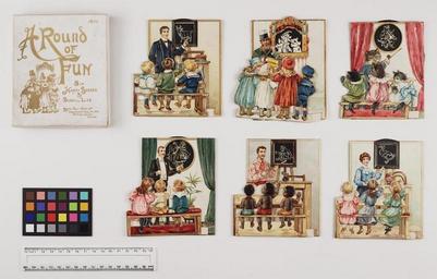 | Keywords: Bodleian Libraries, Art novelty series; 212.jpg Game entitled A round of fun six happy scenes of school life; Artistic series trade mark Designed at the Studios in England and printed at the Arts Works in Germany Six 3-dimensional scraps each with wheel showing images Punch and Judy only digitised Johnson copy is in its original box; Punch and Judy; Children's party; Boy's school; Little darkies' lesson; Nursery lesson; Girl's school; Image 8 box 6 3-D scraps; 130 x 110 x 19 mm exhibition history 007085 object history object type <gallery> File Bodleian Libraries Art novelty series; 212 38 jpg File Bodleian Libraries Art novelty series; 212 37 jpg File Bodleian Libraries Art novelty series; 212 36 jpg File Bodleian Libraries Art novelty series; 212 35 jpg File Bodleian Libraries Art novelty series; 212 34 jpg File Bodleian Libraries Art novelty series; 212 33 jpg </gallery> Licensed-PD-Art PD-old-100 cc-by-4 0 place of creation London England Raphael Tuck Sons; Paris France Raphael Tuck Sons; New York N Y Raphael Tuck Sons place of discovery http //digital bodleian ox ac uk/inquire/p//56384d1c-1e1f-4a0d-b6e6-4d9e9ee0a324 Digital Bodleian Template John Johnson Round of fun six happy scenes of school life-Art novelty series; 212 Uploaded with GWToolset Bodleian Libraries Art novelty series; 212 http //iiif bodleian ox ac uk/iiif/image/2ba72e1b-11a5-4bca-b16b-bb1e1d4beae5/full/ 1000 1000/0/default jpg Files uploaded by the Bodleian Libraries' Wikimedian In Residence Paper toys Drums in art Educators in art Classrooms in art School children in art Nursery rhymes Anthropomorphic cats Punch and Judy Blackboards in art |