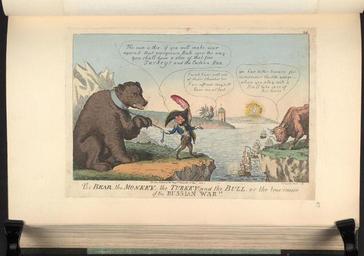 | Keywords: Bodleian Libraries, The bear, the monkey, the turkey and the bull or- the true cause of the Russian war.jpg accession number Curzon b 26 57 Creator Isaac Cruikshank artist Satire on the Napoleonic wars British political cartoon ; A satire on the Treaty of Tilsit between Tsar Alexander I and Napoleon Napoleon as a monkey urges the Russian bear to make war on Britain 240 x 343 sheet mm exhibition history Source filename politi004-awz-0001-0 object history object type Licensed-PD-Art PD-old-100 cc-by-4 0 place of creation place of discovery http //digital bodleian ox ac uk/inquire/p//c251856b-6a2f-4c40-bd4d-92dc8524cc7b Digital Bodleian Template Bodleian Libraries The bear the monkey the turkey and the bull or the true cause of the Russian war Uploaded with GWToolset Bodleian Libraries The bear the monkey the turkey and the bull or the true cause of the Russian war http //iiif bodleian ox ac uk/iiif/image/c251856b-6a2f-4c40-bd4d-92dc8524cc7b/full/ 1000 1000/0/default jpg Files uploaded by the Bodleian Libraries' Wikimedian In Residence Napoleonic Wars Treaty of Tilsit Caricatures of Napoleon I of France Animals in art National symbols -- Russia National symbols -- Turkey National symbols -- England A correct plan and elevation of the famous French raft constructed on purpose for the invasion of England and intended to carry 30 000 men ammunition stores c c Colonies 1808 cartoons Curzon Collection |