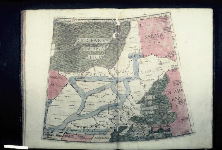 | Keywords: Bodleian Libraries, Eastern Europe to the Sea of Azov.jpg The Bologna edition of Ptolemy's Geography Eastern Europe to the Sea of Azov 565 x 420 map-folio opening mm; 35mm slide exhibition history Filmstrip Roll 286 4 frame 9; Source filename BOD Auct K 1 17 object history object type Licensed-PD-Art PD-old-100 cc-by-4 0 place of creation Bologna Italy place of discovery http //digital bodleian ox ac uk/inquire/p//06fdab73-6904-4891-be55-64ebeaafe9f7 Digital Bodleian Template Bodleian Libraries Map 9 Tabula 9 Uploaded with GWToolset Bodleian Libraries Eastern Europe to the Sea of Azov http //iiif bodleian ox ac uk/iiif/image/06fdab73-6904-4891-be55-64ebeaafe9f7/full/ 1000 1000/0/default jpg Files uploaded by the Bodleian Libraries' Wikimedian In Residence Bodleian Maps Collection Bologna Ptolemy 09 Ptolemy's 8th European Map 1477 1477 maps Maps in Latin |