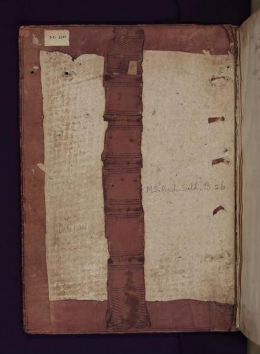Keywords: Bodleian Libraries, Five English manuscripts Inside upper cover.jpg Miscellany of five separate manuscripts all of English origin and bound together c 1660 comprising in Latin and Middle English fols 3-33 'The Selden Carol Book' polyphonic music including fol 17v The Agincourt Song 2nd quarter of the 15th century; in Latin fol 34 one leaf of Gregory's Pastoral Care 8th century and two 15th-century items fols 35-94 Wycliffite tracts by John Tissington and others and fols 95-102 a Calendar with tables for 1459-76 etc ; and in English fols 103-134 William Cartwright The Royall Slave a play performed at Oxford in 1636 ; Inside upper cover exhibition history goobi PPNanalog SC 3340 object history object type Licensed-PD-Art PD-old-100 cc-by-4 0 place of creation place of discovery http //digital bodleian ox ac uk/inquire/p//11d9f36c-2e48-47d3-b7a3-a9decd76fd28 Digital Bodleian Template Bodleian Libraries Five English manuscripts-Selden Carol Book-Pastoral Care-Wycliffite tracts-Calendar-The Royall Slave Uploaded with GWToolset Bodleian Libraries Five English manuscripts Inside upper cover http //iiif bodleian ox ac uk/iiif/image/48fbee5f-812b-4c22-bd37-1cdad61c6580/full/ 1000 1000/0/default jpg Files uploaded by the Bodleian Libraries' Wikimedian In Residence Bodleian Library MS Arch Selden B 26 Bookbinding |