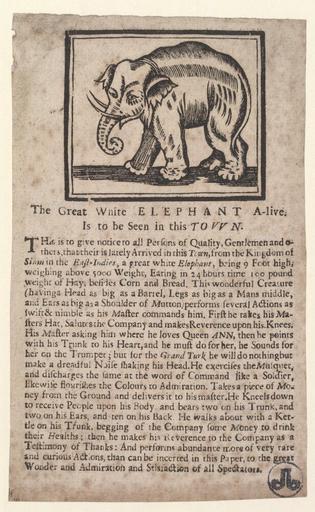| Keywords: Bodleian Libraries, Handbill announcing The great white elephant.jpg Handbill announcing The great white elephant; Great white elephant; Handbill announcing The great white elephant single sheet; 168 x 103 mm exhibition history Great white elephant a-live Is to be seen in this town Allegro identifier 20030512/14 49 58 hm object history object type Licensed-PD-Art PD-old-100 cc-by-4 0 place of creation place of discovery http //digital bodleian ox ac uk/inquire/p//18ca46b3-442d-43d2-9289-0dccea6b153a Digital Bodleian Template John Johnson Handbill announcing The great white elephant Uploaded with GWToolset Bodleian Libraries Handbill announcing The great white elephant http //iiif bodleian ox ac uk/iiif/image/18ca46b3-442d-43d2-9289-0dccea6b153a/full/ 1000 1000/0/default jpg Files uploaded by the Bodleian Libraries' Wikimedian In Residence Elephants in art Elephant trainers Elephants in art Animals performing tricks |