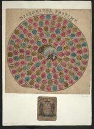 | Keywords: Bodleian Libraries, Historical pastime. A new game of the history of England from William 1st to William 4th.jpg Game entitled Historical pastime A new game of the history of England from William 1st to William 4th; has 134 circles First 20 transcribed as examples; New game of the history of England from William 1st to William 4th; Hastings 1 ; 1066 W I 2 ; Doomsday book 3 ; New Forest 4 ; Holy Lane 5 ; 1087 W II 6 ; Robert D of Normandy 7 ; Death of W II 8 ; 1100 Henry I 9 ; 1135 K S 11 ; War 12 ; Matilda 13 ; 1154 H II 14 ; Alexander 15 ; BBeckett sic 16 ; 1189 R I 17 ; Massacre of the Jews 18 ; 1199 K J 19 ; Prince Arthur 20 ; Interdict 21 ; Historical pastime A new game of the history of England from William 1st to William 4th single sheet; 490 x 478 mm exhibition history 006850 object history object type Licensed-PD-Art PD-old-100 cc-by-4 0 place of creation London England Wallis Edward; London England Harris J Son place of discovery http //digital bodleian ox ac uk/inquire/p//83da8b9c-3708-47d9-9922-dd34316e88ef Digital Bodleian Template John Johnson Historical pastime A new game of the history of England from William 1st to William 4th Uploaded with GWToolset Bodleian Libraries Historical pastime A new game of the history of England from William 1st to William 4th http //iiif bodleian ox ac uk/iiif/image/83da8b9c-3708-47d9-9922-dd34316e88ef/full/ 1000 1000/0/default jpg Files uploaded by the Bodleian Libraries' Wikimedian In Residence Game boards Roger Bacon Roger Mortimer 1st Earl of March John Wycliffe George IV of the United Kingdom William I of England William II of England Robert Duke of Normandy Henry I of England Stephen of England Empress Mathilda Henry II of England Thomas Becket Richard I of England John of England Henry III of England Edward I of England Edward II of England Edward III of England Richard II of England Henry IV of England Henry V of England Henry VI of England Joan of Arc Eleanor of Gloucester Duchess 1391-1447 Edward IV of England Edward V of England Richard III of England Henry VII of England Henry VIII of England Edward VI of England Mary I of England Elizabeth I of England Mary Queen of Scots William Shakespeare James I of England Charles I of England Oliver Cromwell Charles II of England James II of England Mary II of England William III of England Anne of Great Britain George I of Great Britain George II of Great Britain George III of the United Kingdom Napoleon I of France William IV of the United Kingdom Alexander I of Scotland Arthur I of Brittany |