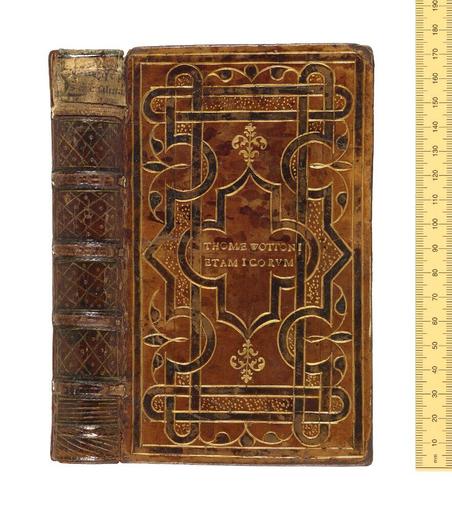 | Keywords: Bodleian Libraries, Orationes III 14.jpg Bound to be shared French Paris c 1547 Brown calfskin with 'Thomae Wotton et amicorum' Thomas Wotton and his friends tooled in gilt Wotton was the first Englishman to follow the practice begun by Jean Grolier of sharing his library with his close associates The phrase 'et amicorum' was therefore an expression of the social nature of his book collection exhibition history Spine and front board source filename oulis2009-atb-0043-0 tif object history object type Licensed-PD-Art PD-old-100 cc-by-4 0 place of creation place of discovery http //digital bodleian ox ac uk/inquire/p//6ddac9ec-7c64-4209-b9ef-907e6860834d Digital Bodleian Template Bodleian Libraries Orationes I-II Uploaded with GWToolset Bodleian Libraries Orationes III_14 http //iiif bodleian ox ac uk/iiif/image/6ddac9ec-7c64-4209-b9ef-907e6860834d/full/ 1000 1000/0/default jpg Files uploaded by the Bodleian Libraries' Wikimedian In Residence Bookbinding |
