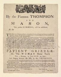 | Keywords: Bodleian Libraries, Playbill for The whole art of dexterity of hand.jpg Playbill for The whole art of dexterity of hand; has manuscript on verso but adhered to mount; Whole art of dexterity of hand; Grand piece of clock-work that represents the King of Prussia's chariot; Pieces of clock-work which represent a coach and chariot with horses coaches and postillion who run round the stage after the rate of ten miles an hour; Beautiful representation of a ship call'd The Royal George; Patient grizzle or The woman never vex'd; Hornpipe; Famous strong woman and dancer with plates and swords from Sadler's Wells; Wonderful electrical machine by which the curious may be satisfied of the wonderful force of attraction and repulsion; Playbill for The whole art of dexterity of hand single sheet; 231 x 183 mm exhibition history By the famous Thompson and Mason this present evening will be exhibited Allegro identifier 20030725/11 47 34 jl object history object type Licensed-PD-Art PD-old-100 cc-by-4 0 place of creation place of discovery http //digital bodleian ox ac uk/inquire/p//f3cb2230-1ded-45bb-a50d-034b46283545 Digital Bodleian Template John Johnson Playbill for The whole art of dexterity of hand Uploaded with GWToolset Bodleian Libraries Playbill for The whole art of dexterity of hand http //iiif bodleian ox ac uk/iiif/image/f3cb2230-1ded-45bb-a50d-034b46283545/full/ 1000 1000/0/default jpg Files uploaded by the Bodleian Libraries' Wikimedian In Residence Engravings of coats of arms to be classified Royal coats of arms |