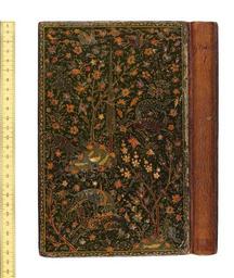 | Keywords: Bodleian Libraries, Yusuf u Zulaykha.jpg Persian lacquer Persian late 16th century Dark green goatskin covered in lacquer painted in gold and multiple colours with depictions of animals birds trees flowers and clouds exhibition history Spine and front board source filename oulis2009-atb-0003-0 tif object history object type Licensed-PD-Art PD-old-100 cc-by-4 0 place of creation place of discovery http //digital bodleian ox ac uk/inquire/p//9726c06b-af31-4db2-899c-303048679693 Digital Bodleian Template Bodleian Libraries Yusuf u Zulaykha Uploaded with GWToolset Bodleian Libraries Yusuf u Zulaykha http //iiif bodleian ox ac uk/iiif/image/9726c06b-af31-4db2-899c-303048679693/full/ 1000 1000/0/default jpg Files uploaded by the Bodleian Libraries' Wikimedian In Residence Bookbinding |
