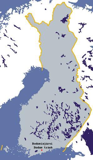 Keywords: Bodominjärvi.png Bodominjärven sijainti Suomessa Läget för Bodom träsk i Finland Location of lake Bodom Modified from the map 'Päijänne png' 2006-11-29 Jukka orig Piirka Locator maps of lakes of Finland Lake Bodom