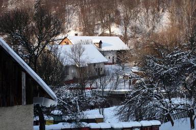 | Keywords: Bodruzal s 2 domami na pravej strane Prikrianky.jpg sk Na pravom brehu Prikrianky v bezprostredne sútoku Bodružalika sú umiestnené led dve chalupy own Peter Zelizňák 6 januára 2009 Own work all rights released Public domain PD self Winter in Bodružal Images by Peter Zeliznak |