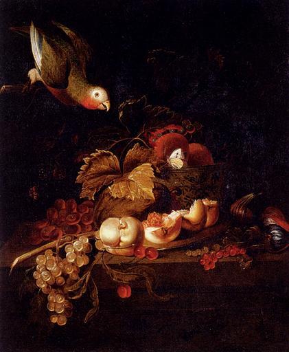 | Keywords: Bogdány Still Life Of Grapes, ...Resting On A Table With A Parrot.jpg Artwork Creator Jakab Bogdány Oil on canvas Size cm 62 9 75 Private collection object history credit line accession number http //www artrenewal org/ artrenewal org http //www artrenewal org/pages/artwork php artworkid 19272 size large Info http //www artrenewal org/artwork//581/3581/19272/still_life_of_grapes _a_halved_peach_and_cherries_resting_on_a_table_with_a_parrot-large jpg Pic PD-old-100 Paintings by Jakab Bogdány in private collections 17th-century oil on canvas paintings 17th-century still life paintings of fruits 18th-century oil on canvas paintings Pictures from the Art Renewal Center 18th-century still life paintings of fruits Oil still life paintings Still life paintings with living parrots |