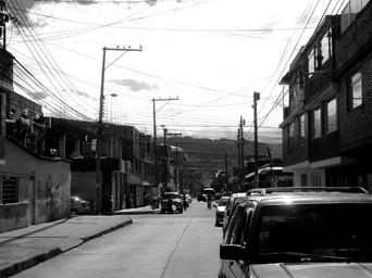 Keywords: bogota colombia capital south america road autos homes civilization full human stone black white day anders wide asphalt building city
