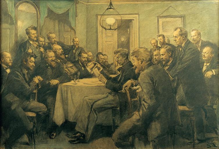 | Keywords: Bogstaveligheden.jpg  da Erik Henningsen Et møde i foreningen Bogstaveligheden 1 marts 1882 Sitting from the left Erik Skram Georg Brandes Sophus Schandorph Holger Drachmann Edvard Brandes Viggo Johansen August Jerndorff Herman Trier J P Jacobsen P S Krøyer Karl Madsen Pietro Krohn Kristian Zahrtmann Standing from the left F Hendriksen Karl Gjellerup Otto Borchsenius Hans Nic Hansen Martinus Galschiøt Laurits Tuxen Harald Høffding Michael Ancher http //www denstoredanske dk/Kunst_og_kultur/Billedkunst/Danmark_1850-1910/Erik_Henningsen source Ca 1910 Blyant og farvekridt 66 x 97 cm http //litteraturensveje systime dk/index php id 291 Creator Erik Henningsen ~ 1910 PD-old Paintings from Denmark Erik Henningsen ImageNote 1 576 248 70 77 1100 747 2 J P Jacobsen ImageNoteEnd 1 ImageNote 2 670 245 85 116 1100 747 2 P S Krøyer ImageNoteEnd 2 ImageNote 3 109 259 70 92 1100 747 2 Georg Brandes ImageNoteEnd 3 ImageNote 4 3 250 63 95 1100 747 2 Erik Skram ImageNoteEnd 4 ImageNote 6 1022 234 51 81 1100 747 2 Kristian Zahrtmann ImageNoteEnd 6 ImageNote 7 129 129 62 87 1100 747 2 Frederik Hendriksen ImageNoteEnd 7 ImageNote 8 190 177 33 59 1100 747 2 Karl Gjellerup ImageNoteEnd 8 ImageNote 9 232 160 55 63 1100 747 2 Otto Borchsenius ImageNoteEnd 9 ImageNote 10 364 183 37 56 1100 747 2 Hans Nikolaj Hansen ImageNoteEnd 10 ImageNote 11 751 193 43 50 1100 747 2 Martinus Galschiøt ImageNoteEnd 11 ImageNote 12 792 175 41 56 1100 747 2 Laurits Tuxen ImageNoteEnd 12 ImageNote 13 872 138 69 95 1100 747 2 Harald Høffding ImageNoteEnd 13 ImageNote 14 963 150 44 73 1100 747 2 Michael Ancher ImageNoteEnd 14 ImageNote 15 226 249 58 83 1100 747 2 Sophus Schandorph ImageNoteEnd 15 ImageNote 16 285 231 33 65 1100 747 2 Holger Drachmann ImageNoteEnd 16 ImageNote 17 399 256 37 73 1100 747 2 Edvard Brandes ImageNoteEnd 17 ImageNote 18 441 259 26 55 1100 747 2 Viggo Johansen ImageNoteEnd 18 ImageNote 19 484 260 34 63 1100 747 2 August Jerndorff ImageNoteEnd 19 ImageNote 20 517 271 26 59 1100 747 2 Herman Trier ImageNoteEnd 20 ImageNote 21 769 249 40 76 1100 747 2 Karl Madsen ImageNoteEnd 21 ImageNote 22 813 228 52 95 1100 747 2 Pietro Krohn ImageNoteEnd 22 |