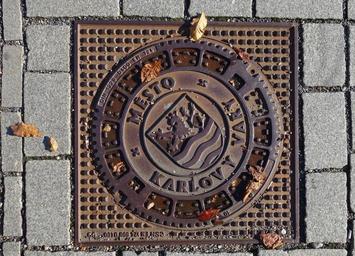| Keywords: Bohemian lion, Karlsbad (Karlovy Vary), 2016-10-04 (2).jpg Kanaldeckel mit dem böhmischen Löwen Karlsbad Karlovy Vary 2016 own 2016-10-04 Kürschner <span class signature-talk ></span> 07 48 12 October 2016 UTC Kürschner 2016 in Karlovy Vary Crowned lions rampant in heraldry Manhole covers in the Czech Republic Karlovy Vary |