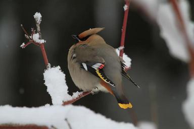 | Keywords: bohemian waxwing bohemianwaxwing bombycilla garrulus bombycillagarrulus glacier national park glaciernationalpark nps montana birds spring snow ornithology outdoor animal bird A Bohemian Waxwing (Bombycilla garrulus) puffs its feathers on this cold and snowy day in April. Photo: David Restivo, NPS A Bohemian Waxwing (Bombycilla garrulus) puffs its feathers on this cold and snowy day in April. Photo: David Restivo, NPS | ||||