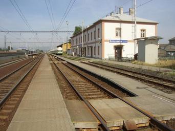 | Keywords: Bohusovice nad Ohri CZ railway station from SE 004.jpg Železniční stanice Bohušovice nad Ohří na páteřní trati 090 z Prahy do Děčína Pohled od jihovýchodu po pravé straně úrovňocě přístupná dvojice nástupišť ve směru Děčín po levé straně nástupiště směr Praha přístupné podchodem obě zastřešená ústí podchodu jsou patrná zcela vlevo a zcela vpravo Na pravé koleji v pozadí vlak obsluhující přes Lovosice cementárnu v nedalekých Čížkovicích Bohušovice nad Ohří railway station on backbone 090 railway line from Prague to Děčín A view from the southeast In the right two level-ccesible platforms serving trains bound for Děčín in the left the platform in Prague direction accessible via an underpass both covered ends of the underpass are visible in the very left and very right In the right background a freight train serving via Lovosice the cement works in nearby Čížkovice Own 2008-07 User Miaow Miaow <gallery> Image Bohusovice nad Ohri CZ railway station from NE 007 jpg </gallery> 50 29 28 0 N 14 09 01 7 E region CZ Bohušovice nad Ohří train station Taken with Olympus C-300Z / D-550Z |