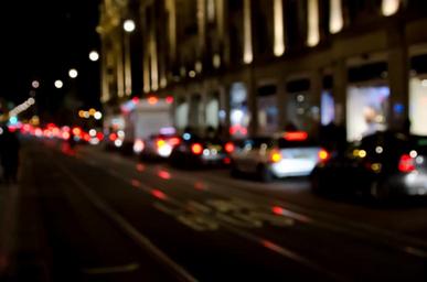 Keywords: bokeh street blur lights car night focus effect glowing dots