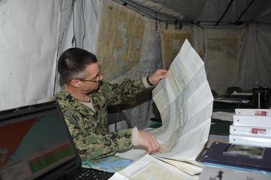 | Keywords: Bold Alligator 12 120208-N-YX920-082.jpg en Chief Operations Specialist Terry Dehollander assigned to Riverine Squadron 3 observes a navigational map to track the progress of riverine forces during Exercise Bold Alligator 2012 the largest amphibious exercise in the past 10 years The exercise represents the Navy and Marine Corps' revitalization of the full range of amphibious operations The exercise focuses on today's fight with today's forces while showcasing the advantages of sea basing This exercise will take place Jan 30 - Feb 12 2012 afloat and ashore in and around Virginia and North Carolina <br>Unit Navy Expeditionary Combat Command 2012-02-08 Petty Officer 1st Class Lynn Friant https //www dvidshub net/image/521214/bold-alligator-12 120208-N-YX920-082 2012-02-08 12 56 CAMP LEJEUNE NC US PD-USGov-Military-Navy Marine Corps Base Camp Lejeune Bold Alligator 2012 Images from DoD uploaded by Fæ |