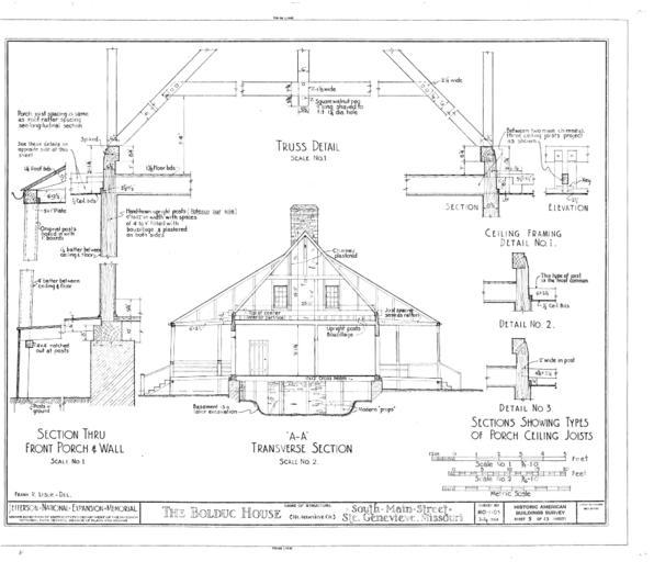 Keywords: Bolduc House Transverse Section--Ste Genevieve MO.svg The Bolduc House was built by Peter Bolduc a very prominent merchant in1740 in Ste Geneviève Missouri The house along with the rest of the village was moved to its present location on higher ground in 1785 to escape flooding from the Mississippi River Historic American Engineering Record National Park Service; Record MO-1105 1938-07 Drawn by Frank R Leslie MO-1105 Maison Bolduc drawings |