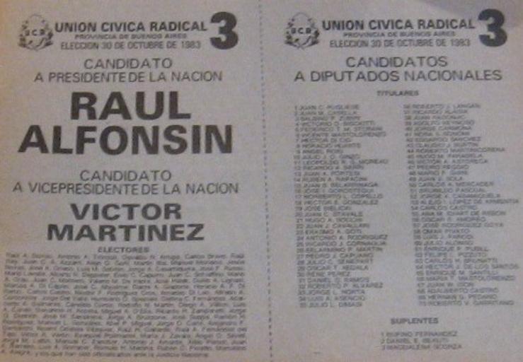 Keywords: Boleta Alfonsín.JPG es Boleta electoral de la Unión Cívica Radical en 1983 con Raúl Alfonsín como candidato a presidente El mismo se impondría en dichos comicios Foto de copia conservada en el Museo Histórico Nacional own Belgrano 09/01/2009 Raúl Alfonsín Ballot papers in Argentina Museo Histórico Nacional Argentina 1983 Argentine general election Víctor Hipólito Martínez Unión Cívica Radical |