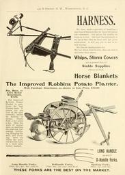 | Keywords: Bolgiano's 1902 catalogue (16348283891).jpg 935 B Street X W Washington D C <br> HARNESS <br> We have made a specialty of handling a <br> nice line of Harness that we know will please <br> our customers Our prices for quality we <br> know to be low Our trade has increase <br> we know that what we have sold has given <br> satisfaction It will pay you to see us be- <br> fore buying <br> We also are headquarters for <br> We buy direct from factory thus are able to <br> sell lower than others <br> Whips Storm Covers <br> and a general line of <br> Stable Supplies <br> alwavs on hand <br> Horse Blankets <br> The Improved R obbins Potato Planter <br> With Fertilizer Distributor as shown in Cut Price 70 00 <br> Pea Bean or <br> Corn Sower <br> Attachment <br> 5 00 <br> The Improved <br> Robbins Potato <br> Planter is posi- <br> tively- the best <br> Planter made It <br> plants ioo per <br> cent of the seed <br> correctly makes <br> no doubles or <br> misses Plants <br> from 4 to 7 acres <br> a day Does the <br> work of several <br> men as marking <br> the next row fur- <br> rowing fertiliz- <br> ing dropping the <br> seed and cover- <br> ing Does not <br> injure the seed <br> but does the work <br> in a most satis- <br> factory manner <br> LONG HANDLE <br> D-Handle Forks <br> Long Handle Forks <br> Price 40c 50c 60c and 70c <br> D-Handle Forks <br> Price 60c 70c 90c and fi oo <br> Spading Forks <br> Price 75c and 85c <br> THESE FORKS ARE THE BEST ON THE MARKET 42156289 132756 65911 Page 39 Text http //www biodiversitylibrary org/page/42156289 1902 10 5962/bhl title 65911 F W Bolgiano Co ; Henry G Gilbert Nursery and Seed Trade Catalog Collection Biodiversity Heritage Library Bolgiano's 1902 catalogue tested seeds for the garden and farm Garden Stories Bulbs Plants Catalogs Fruit Garden tools Nurseries Horticulture Seeds Vegetables U S Department of Agriculture National Agricultural Library bhl page 42156289 dc identifier http //biodiversitylibrary org/page/42156289 bhlGardenStories BHLinbloom bulbs plants nurseries horticulture u s department of agriculture national agricultural library bhlgardenstories bhlinbloom Information field Flickr posted date ISOdate 2015-01-23 Check categories 2015 August 24 CC-BY-2 0 BioDivLibrary https //flickr com/photos/61021753 N02/16348283891 2015-08-24 08 53 33 cc-by-2 0 PD-old-70-1923 Bolgiano's 1902 catalogue Photos uploaded from Flickr by Fæ using a script |