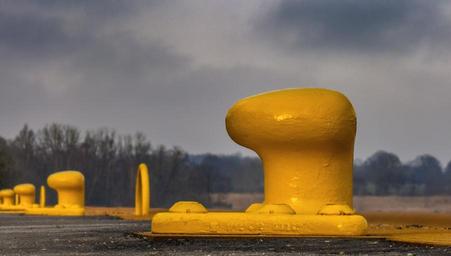 Keywords: bollard mooring pier port berths water fix kai seafaring marina investors metal yellow anchorage leash close up maritime ship boot coast sea sail ship accessories dew rope