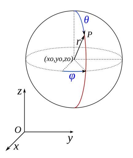 Keywords: Bolparameters.svg nl parametervergelijkingen van een bol 2013-10-27 15 38 09 own Jhncls cc-zero Uploaded with UploadWizard Spherical coordinates