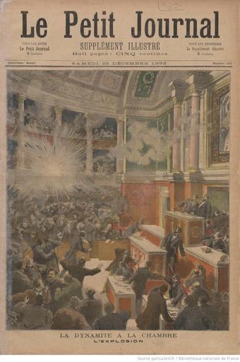 | Keywords: Bomb French Chamber 1893.jpg en Artist's rendition of the bomb thrown in the French National Assembly by the anarchist Auguste Vaillant on December 9 1893 2011-10-17 Le Petit Journal 1893 author PD-old-100 PD-Art Check categories 2011 October 19 en wikipedia Propaganda_of_the_deed 2 Uploaded with UploadWizard Propaganda of the deed |