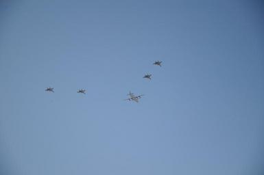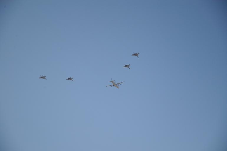 | Keywords: Bomber and fighter-jet flyby.JPG en Rehearsal flyby of Shaanxi Y-8/KJ200 AWACS aircraft and Su-27 fighters over Beijing China Practice for 60th anniversary of PRC on 1 October National Day 2009 own Scott Meltzer 2009-09-21 China's 60th anniversary parade Events in Beijing Military rehearsals Sukhoi Su-27 in Russian service Shaanxi Y-8 |