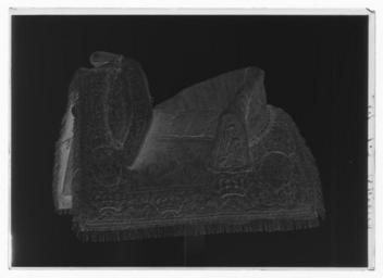 | Keywords: Bomsadel, Frankrike, 1650-talet av isabellafärgad sammet - Livrustkammaren - 35783-negative.tif Sadel klädd med beige-färgad isabellafärgad sammet med hela yttäckande broderi med silvertråd och pärlor i rankor och palmetter Rektangulära kappor med frans I varje hörn en konturerad krönt vapensköld i relief med Karl X Gustavs namnchiffer C G R S Däremellan utmed nederkanten och framkanten strödda stora kronor <br/><br/>Sitsen med glesare broderi med en längsgående kavelfrans utmed mitten <br/><br/>Höga bommar bakbom h 120 mm b 520 mm med stödbommar Frambom h 100 mm b 460 mm <br/><br/>Sadelknapp av försilvrad mässing framåt utdragen räfflad <br/><br/>Framför frambommen 8 + 9 silvertännlikor bakom bakbommen 10 + 2 likadana tännlikor Framtill söljor för förbygel Baktill sölja för ryggstycke Fyra stroppar av vitt läder för sadelgjord Två byglar av stål för stigbyglar original caption decade 1650 velvet Färg beige material sammet - silver thread size mm 560 size mm 280 sits g 6450 LRK Karl X Gustav av Sverige Hästen 2003-2004 Silver - Makt o prakt i barockens Sverige 2003-2004 C G R S Karl X Gustav av Sverige C G R S Karl X Gustav av Sverige place of origin original filename LN_B12514_015394 48182 inventory number LRK 11578 35783 CC0 Bomsadel Frankrike 1650-talet av isabellafärgad sammet - Livrustkammaren - 35783 tif <gallery caption Different images of same object > File Bomsadel - Livrustkammaren - 8482 tif File Bomsadel Frankrike 1650-talet av isabellafärgad sammet - Livrustkammaren - 44341 tif File Bomsadel Frankrike 1650-talet av isabellafärgad sammet - Livrustkammaren - 27222 tif </gallery> |