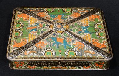 | Keywords: Bonbons A Driessen blik, foto 2.JPG Very old packaging of a Dutch product that is not produced and/or not sold any more Photographed at a collector of Droste memorabilia and old tin cans For more info see http //www tincollectors nl/ tincollectors nl or email info tincollectors nl own 2014-04-11 13 32 31 Alf van Beem CC-Zero Trademarked Chocolate tins |