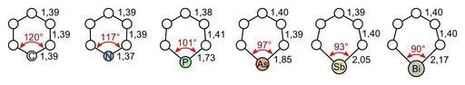 | Keywords: Bond lengths of group 15 heterobenzenes and benzene.svg Bindungslängen und -winkel von Benzol und verschiedenen Heterobenzolen der 15 Gruppe von links nach rechts Benzol Pyridin Phosphabenzol Arsabenzol Stilbabenzol und Bismabenzol Bond lengths and angles of benzene and different group 15 heterobenzenes from left to right benzene pyridine phosphabenzene arsabenzene stilbabenzene and bismabenzene own Zahlenwerte entnommen aus Christoph Elschenbroich Organometallchemie 6 Aufl 2008 Teubner Seite 218 GBS wtuuzCfNTCcC numerical values taken from Christoph Elschenbroich Organometallchemie 6th ed 2008 Teubner page 218 GBS wtuuzCfNTCcC 2010-04-25 Sponk <span class signature-talk >talk</span> Version ohne Benzol Bond_lengths_of_group_15_heterobenzenes svg Version without benzene Bond_lengths_of_group_15_heterobenzenes svg Heterocyclic compounds with 1 ring |