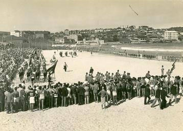 | Keywords: archives state records nsw staterecordsnsw newsouthwales blackandwhite bondi beach surfing sydney people surfers spectators life guards lifeguards life savers lifesavers outdoor black and white A surfing carnival, Bondi Dated: March 1937 Digital ID: 12932_a012_a012X2449000005 Rights: www.records.nsw.gov.au/about-us/rights-and-permissions We'd love to hear from you if you use our photos. Many other photos in our collection are available to view and browse on our website using Photo Investigator. A surfing carnival, Bondi Dated: March 1937 Digital ID: 12932_a012_a012X2449000005 Rights: www.records.nsw.gov.au/about-us/rights-and-permissions We'd love to hear from you if you use our photos. Many other photos in our collection are available to view and browse on our website using Photo Investigator. |