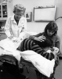 | Keywords: Bone marrow tap.jpg A young female patient being comforted by her mother on examining table getting needle inserted for a bone marrow tap by a Caucasian female nurse Topics/Categories People -- Adolescent/Young Adult People -- Adult People -- Health Professional and Patient Test or Procedure -- Biopsy Type B W Photo Source National Cancer Institute Bill Branson Photographer 2326 1988-01 Reuse Restrictions None - This image is in the public domain and can be freely reused Please credit the source and/or author listed above Bill Branson Photographer PD-USGov-HHS-NIH Media from National Cancer Institute Visuals Online Images uploaded by Fæ Bone marrow |