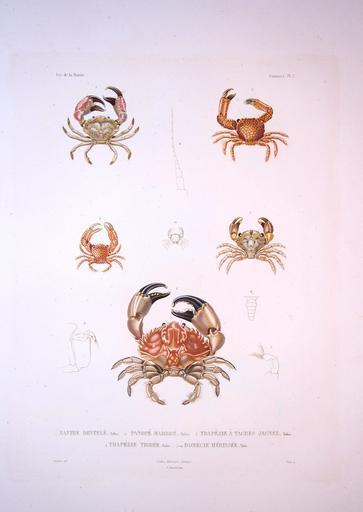 Keywords: Bonite-crustacés-pl02.jpg en Zoology crustaceans fr Zoologie crustacés Xanthe dentelé Cycloxanthops sexdecimdentatus Panopé marbré Eurypanopeus crenatus Trapézie à taches jaunes Trapezia flavopunctata Trapézie tigrée Trapezia tigrina Domecie hérissée Domecia hispida numérisation Atlas Zoologique du Voyage de la corvette La Bonite Bibliothèque patrimoniale de Gray Jeffdelonge <span class signature-talk >talk</span> 1852 PD-old Voyage de la Bonite Cycloxanthops sexdecimdentatus Eurypanopeus crenatus Trapezia flavopunctata Trapezia tigrina Domecia hispida |