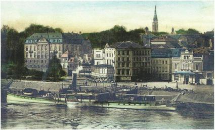 | Keywords: Bonn Rheinufer Rheinbrücke 1907.jpg Blick von der Rheinbrücke auf das Rheinufer Bonn; in der Mitte das Hotel Rheineck Stadtarchiv Bonn Postkartensammlung original source <br />Heijo Klein Ansichten vom Bonner Rheinufer In Bonner Heimat- und Geschichtsverein Stadtarchiv Bonn Hrsg Bonner Geschichtsblätter Jahrbuch des Bonner Heimat- und Geschichtsvereins Band 57/58 Bonn 2008 ISSN 0068-0052 S 74 1907 author PD-old Brassertufer Bonn in the 1900s | ||||