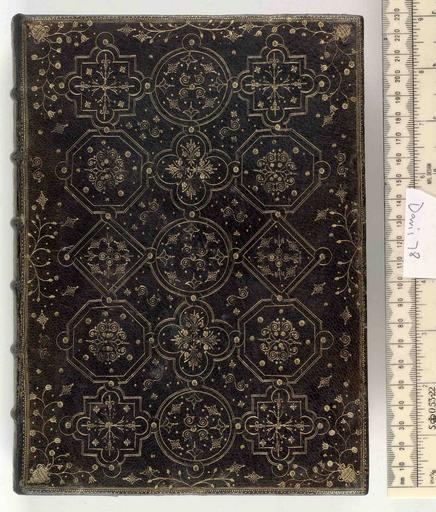 | Keywords: Book of Common Prayer -bound with Bible and Psalms- - Upper cover (Davis78).jpg Style Urn Compartments Floral; Caption Upper cover; Colour Black; Edge Unspecified exhibition history Decorative Technique Tooled in gold; Cover Material Goatskin includes morocco turkey etc Signed by the binder on a leather strip above the turn in of the lower cover 'Cleeve fecit' See also not digitised 292a10 object history Text 1666; Cambridge; Unspecified object type Cc-zero place of creation Binding England place of discovery See M M Foot The Henry Davis Gift vol II London 1983 British Library image http //www bl uk/catalogues/bookbindings/LargeImage aspx RecordId 020-000002058 ImageId ImageId 40634 Copyright BL Book of Common Prayer bound with Bible and Psalms Uploaded with GWToolset Book of Common Prayer bound with Bible and Psalms - Upper cover Davis78 http //www webarchive org uk/bldatasets/bindings/5761_4 jpg Bookbinding 17th-century bookbinding British Library Bookbindings |